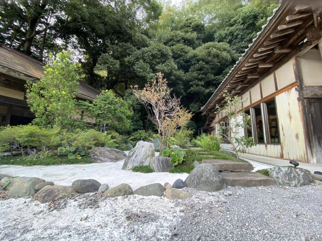 外には枯山水の日本庭園が広がり